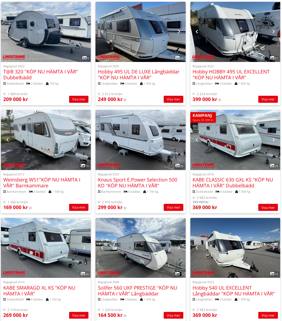 Under november har vi sänkt ordinarie priser på en stor del av våra begagnade husvagnar i lager.